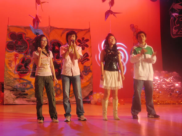 学生在“梦想齐医”文艺汇演上演唱歌曲