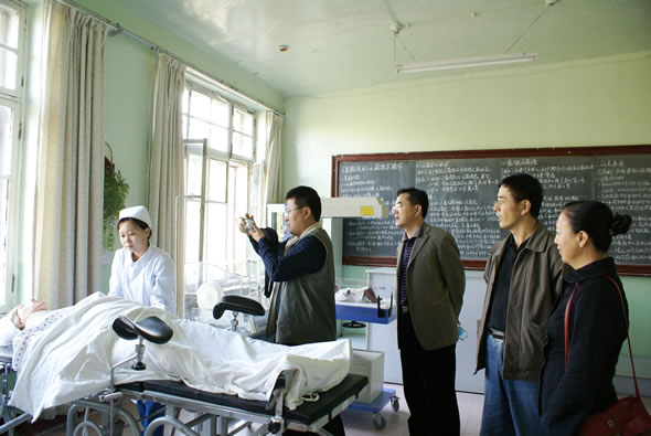 对陈群先生来访,学院外事处和院办代表学院做了热情接待。外事处长吕颖和院办主任王晓星等首先请客人落座学院机关316会议室,双方互相介绍了情况,并就联合培养国际型护士和合作创办国际护理学院的可行性展开积极探讨。随后,吕颖处长和王晓星主任等陪同陈群先生和杨继全副局长一行先后考察了学院护理系实验室,参观了学院形态学标本陈列馆、校史展馆和建设中的新校区。