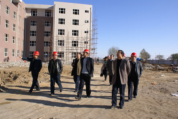 为考察我院办学条件,为规划明年招生工作获取一手资料,10月28日上午,省教育厅招生办公室副主任李云增一行4人莅临我院,在院长刘吉成,和副院长姜凤楼、崔光成等陪同下,对我院新校区建筑规模及工程施工进展情况进行了认真考察。李云增对即将交工的主楼建筑宏伟壮观的艺术造型大加称赞,并幽默地将主楼5个放射状伸展的附体建筑形象地喻为5根济世银针,充分肯定了我院宏伟的建设规模和美好的发展前院长刘吉成在向省招办副主任李云增介绍我院新校区建设情况院领导陪同李云增副主任一行视察我院新校区校园