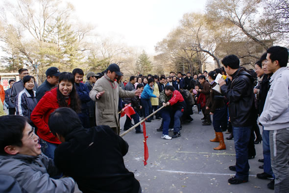 10月31日下午,基础医学部举办了一场别开生面的“迎奥运”、庆“十七大”文体活动,在学院主楼门前举行了教职工拔河比赛。赛前,基础党委在露天赛场举行了简短而隆重的开赛仪式,胡亚凡书记对赛会活动的意义做了强调,并希望通过比赛进一步增进职工的工作积极性和友谊。比赛以支部为单位,基础党委的六个支部全部组队参加了比赛。比赛以循环赛方式进行。经过半个小时的全力拼搏,基础第五支部夺得冠军,第三和第四支部分别获得亚军和季军。赛会进一步活跃了基础部教职工的文化生活。