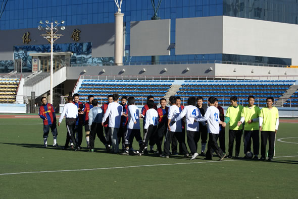 我院职工“迎奥运”首届职工业余足球赛,上周日在富区体育场开赛,成功拉开了赛会帷幕,其两场精彩的赛事,成为了全院广大教职工热心关注的校园文化生活的焦点。根据活动安排,11月3日,比赛转至北市区齐齐哈尔大学西区体育场进行。这是学院工会有史以来,首次横跨南北市区组织开展体育赛事,也是第二、六附院队员第一次在“家门口”参加院工会组织的体育赛事。