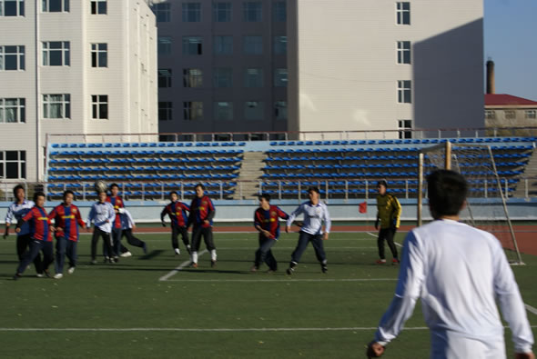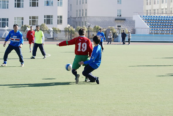 上午,赛会的组织者们,早早顶着寒风,赶到齐大体育场,张挂好赛会宣传横幅,给球门穿上了“网衣”,为球赛做好了一切准备。是日进行的两场比赛分别是:校本部对一附院和六附院对二附院。10时50分,随着比赛开始的哨声,校本部与一附院两支球队旋即展开相互对攻……经过90分钟的激烈较量,最终院本部以5比1取胜。紧接着进行的六附院和二附院的比赛,由于双方出场阵容和上周相比发生了变化,使得双方场上的实力有所接近,争夺异常激烈……90分钟里,双方交替撕破对方大门,裁判结束比赛的哨声,最终将两队比分锁定在了5比4,六附院只以1分的优势赢得了比赛。
