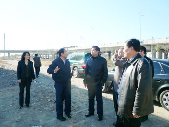 张晓友院长在向学院领导介绍学生宿舍周边环境的改建规划