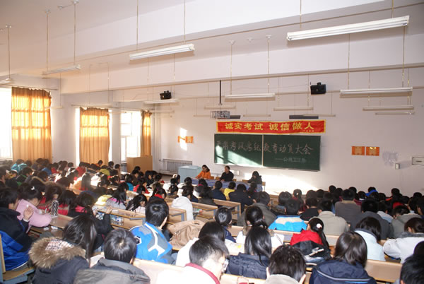 12月19日中午,公共卫生系以“诚实考试,诚信做人”为题,组织全系师生召开期末考试考前严肃考风考纪动员大会。系党总支副书记史孝志、副主任孙要武先后在会上发表动员讲话,重点强调了考试违纪的严重性,要求学生认真进行期末复习,诚实应对期末考试,培养诚实守信良好习惯,确保期末考试零违纪。系办副主任孙荣利主持了会议。
