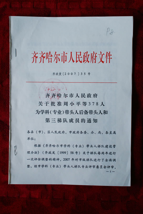 根据《齐齐哈尔市人民政府关于批准周小平等378人为学科(专业)带头人后备带头人和第三梯队成员的通知》(齐政发[2007]35号)精神,市政府对2007年市级学术梯队进行了全面调整。经市学科(专业)带头人梯队专业评审委员会评审,我院药理学学科被评为齐齐哈尔市重点学科,院长刘吉成教授被评为学科带头人,牛英才副研究员被评为后备带头人,李莉教授被评为第三梯队成员。