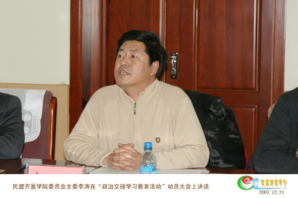 省政协委员、市人大代表、民盟市委副主委、民盟学院基层委员会主委李涛,在会上发表了关于开展“政治交接学习教育活动”的动员讲话。他说,民盟市委和民盟学院基层委员会,虽然去年顺利完成换届,实现了组织上的交接,但民盟组织的“政治交接学习教育活动”才刚刚开始,还任重道远,这是一项长期而艰巨的任务。“政治交接学习教育”,是摆在大家面前的关乎民盟组织自身发展建设的一项重大课题,我们必须完成好。根据民盟中央的《意见》、民盟省委和中共省、市委统战部的有关文件指示精神,按照民盟市委“政治交接学习教育活动”的安排和部署,结合我院工作实际,民盟学院基层委员会将用1~2年时间,开展以“坚持走中国特色社会主义政治发展道路”为主题的“政治交接学习教育活动”。我们务必不失时机、力求实效地开展好这一活动。