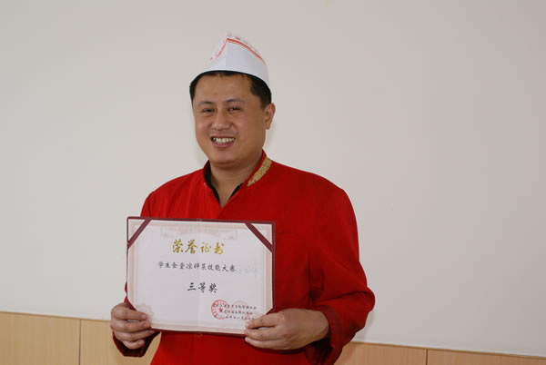 11月中旬,省教育厅伙食专业委员会在哈尔滨师范大学举办全省高校第三届厨艺大赛,我院后勤服务总公司饮食服务中心职工食堂厨师安国峰,代表学院参加大赛并荣获三等奖。本届共有全省高校80余名厨艺高手参赛,最终决出一等奖1名,二等奖2名,三等奖4名,我院为哈外高校唯一获奖单位。 图为我院获奖厨师安国峰手捧获奖证书