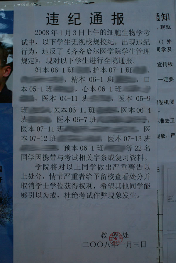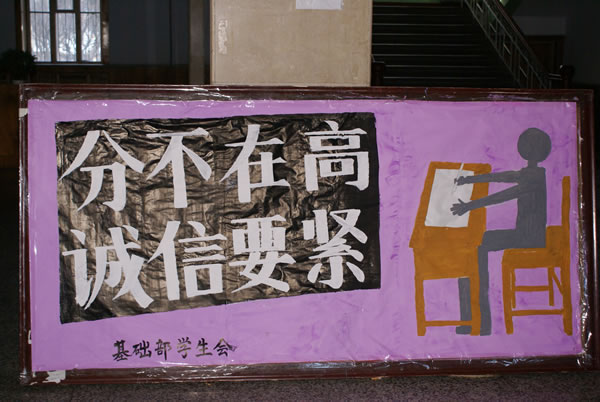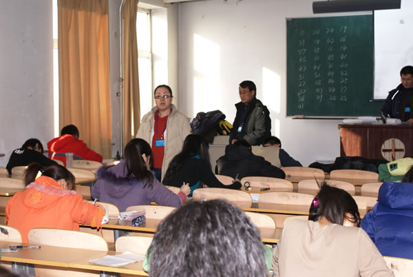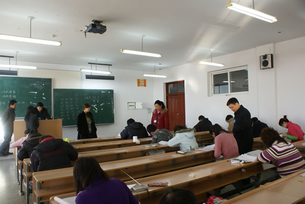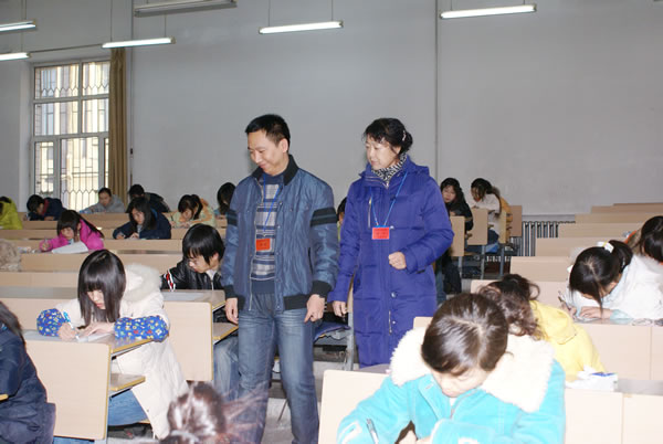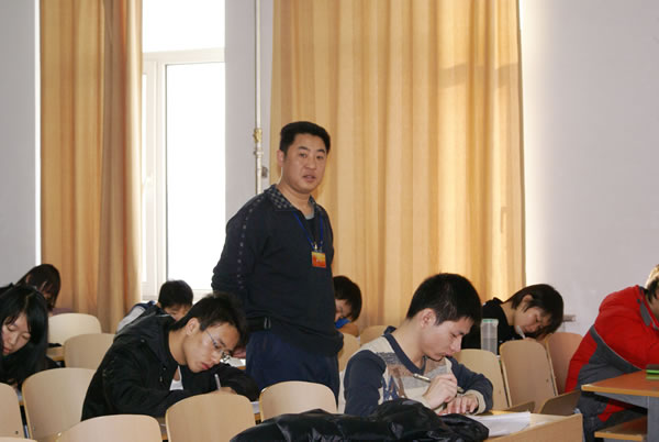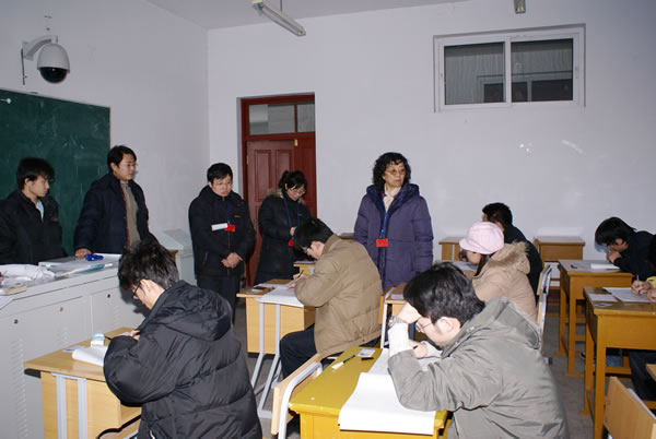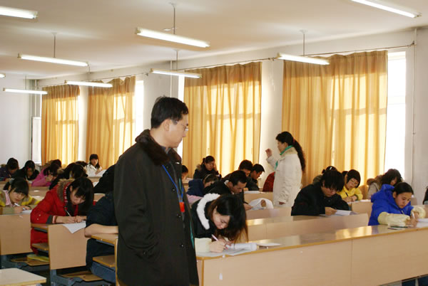 07~08学年第一学期末考试工作,在学院期末考试工作领导小组重视和领导下,各部系认真组织学生和监考教师进行考前动员,周密部署考试工作,重点强调考试纪律,提前做好一切考前准备工作,全院范围的考试工作集中开始之日,学院领导会同教务处等有关职能部门负责人与各部系巡考领导深入考场认真巡查,对22名考试违纪学生给予严肃处理,端正了考风,严肃了考纪。目前,学院考试工作已进行数日,各考场监考教师认真负责,各部系巡考领导认真巡查,考生悄无声息地认真答卷,考场秩序井然。下面是学院记者深入考区拍摄的一组考试场面,发布网上,以做好期末考试宣传工作,进一步端正考风,促进学院教学质量的进一步提高。