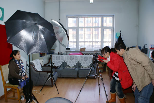 成教学院工作人员在为成教生注册学籍拍摄照片
