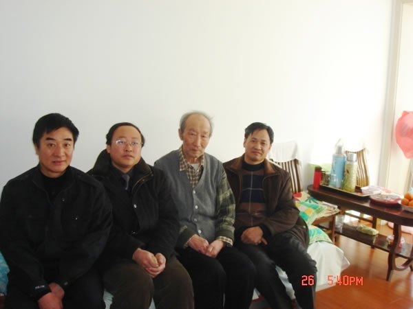 图为学院纪委书记谭忠汉与组织部的同志走访老干部崔玉斌教授时一同合影