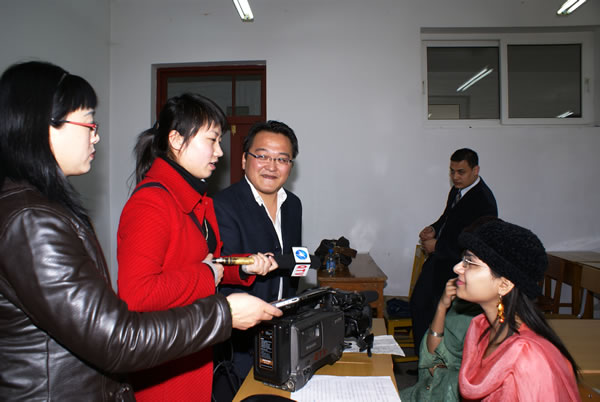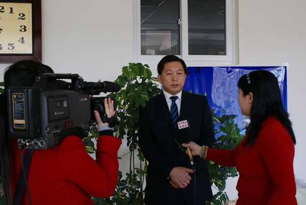 典礼仪式结束后市电视台记者采访刘吉成院长