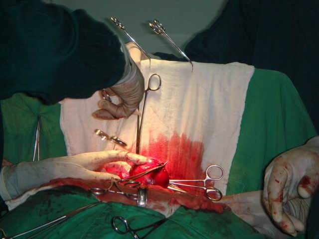 许景伟主任介绍,甲状腺肿瘤是甲状腺常见的疾病之一,绝大多数都体积较小,如此巨大的甲状腺肿物尚属罕见。通过CT检查可见甲状腺肿物向内生长,已经压迫气管,使气管变形严重;另外该患者伴有甲亢症状,甲亢患者的甲状腺体供血异常丰富,手术极易引发大出血、气管塌陷等严重手术并发症,顺利完成手术的确存在较大风险。许景伟主任首先组织普外一科医生、麻醉科王海宽主任、呼吸内科皮秀杰主任、胸心外科信国玺主任会诊,多科通力合作,认真研究治疗对策,制订出周密的手术、麻醉方案及紧急处理措施。于7月17日8时,在麻醉科王海宽主任和手术室护士的全力配合下,经过近5个小时多个科室的共同努力,顺利将肿物切除,称得所切甲状腺肿物近2.5公斤。术后经普外一科医护人员的精心治疗与护理,目前患者恢复良好,无并发症,已基本康复。