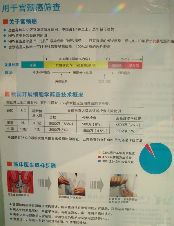 据病理科徐凤林主任介绍,从2007年3月,新柏氏子宫颈防癌检查投入临床以来,已经给900多名患者筛查,查出癌变患者占10%。这种新型检测手段,弥补了以往检测方式的漏查缺陷,同时避免了因为检测不清,对患者采取保守治疗,对病灶处置过度的问题。