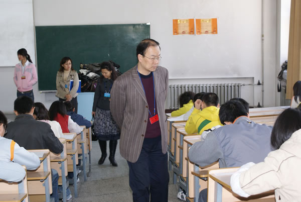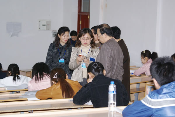 为加强监考工作力度,在监考环节上,我院教务处组织由教务、纪检监察、学生工作等部门人员参加的联合巡考队伍,同时吸纳三所参考学校派来的巡考人员与我院巡考人员联合“执法”。学院保卫处还着装上岗,对布设考场的三号教学楼实行了戒严。为抓好监考环节,考前学院教务处对监考教师进行认真遴选和培训,并于临考前30分钟随机抽取确定了每位监考教师所监的考场。考试过程中,教学副院长崔光成亲自率领巡考人员始终坚守在考试现场,挨个考场进行巡查,密切注视一切可能的作弊迹象。为了防止手机作弊,学院还购置专用设备对每个考场实行了手机屏蔽。