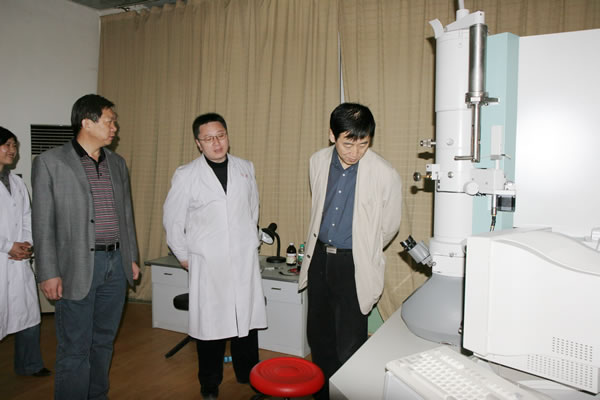 崔德华博士在院领导及相关部门人员陪同下参观考察电镜室