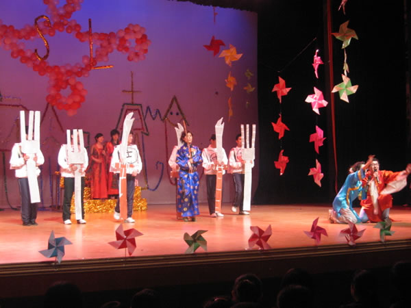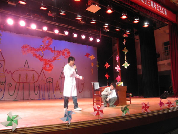 演出在全体社联成员高亢的《社联之歌》声中拉开帷幕。整台演出共推出歌舞、相声、小品和搞笑剧等近20个节目。近两个小时的文艺演出,开场舞蹈热情奔放,现代舞活力四射;舞蹈串烧风格各异,优雅的民族舞蹈与动感十足的街舞将古典与现代舞蹈艺术完美结合,即体现了民族舞蹈的传统风韵,同时也体现了现代舞蹈的欢快节奏;社联干部优美的舞姿和着唯美的《神话》曲调,充分展现了他们对大学美好生活的无尽爱恋。历届“礼仪小姐、阳光先生”登上舞台,为与会师生展示了齐医学子最为亮丽的青春风采。社联副主席杜鑫的倾情演唱,给观众心田播洒了阳光般的温暖;06级社联成员通过集体演唱《友情岁月》,向同学们诠释了大学同窗情谊的可贵。相声、幽默小品、搞笑话剧等多种形式的文艺节目,充分展现了我院大学生校园文化生活的丰富多彩。英语协会成员与我院留学生携手出演的英文歌曲《ONE WORLD ONE DREAM》将演出气氛推向高潮。演出在《和你一样》的美妙合唱声中圆满结束。