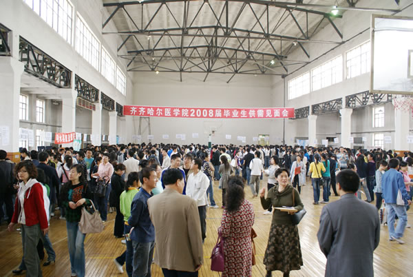 4月19日,学院校园内彩旗飘舞,体育馆门前彩虹门高耸,馆内聚集了来自北京、内蒙等省内外38家医疗卫生机构,应邀参加我院2008届毕业生供需见面会,学院近千名应届毕业生参加了应聘会。此次邀请的46家用人单位,除北京、内蒙等省、市部分医疗卫生机构外,绝大部分是本省各市、县的医疗卫生机构。招聘会紧密切合学院“面向基层”人才培养方向,所招专业几乎涵盖了我院的所有专业,提供就业岗位277个。招聘会结束时,每家用人单位都高兴地带回去一批应聘毕业生的简历资料。据学生工作部门预计,此次招聘会至少会有上百名学生被用人单位聘用。