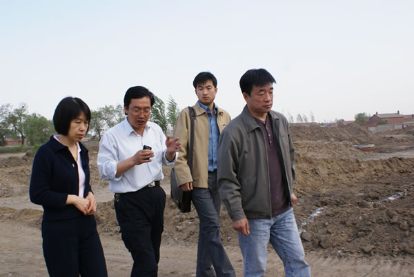 叶桂兰博士后在一附院副院长胡凯、基建处处长齐绍文等陪同下参观新校区工地