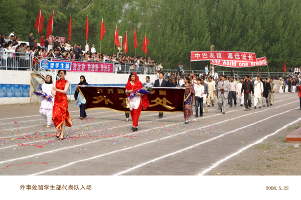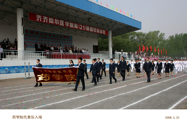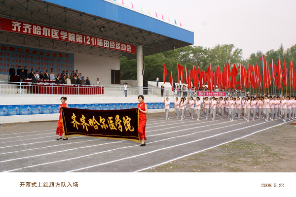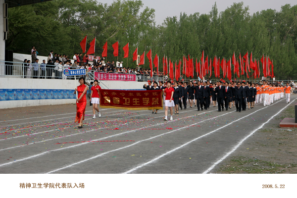 8:00国旗、校旗、彩旗、裁判员、院直各单位以及由外教和留学生组成的17支方队在庄重的进行曲中穿着整齐的服装、迈着矫健的步伐,精神抖擞地接受了大会主席团的检阅,充分展现了我校师生积极向上、锐意进取、顽强拼搏的精神风貌。