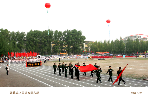 上午7:30,姜连清副书记郑重宣布运动会开幕,全体参会人员首先为四川汶川地震中遇难的同胞默哀,表达了我校师生对遇难同胞的深切哀悼。