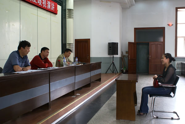 为组建一支高素质饮食服务员工队伍,推动校园饮食文化发展,适应我院大学文化建设需要,5月31日,后勤服务总公司饮食服务中心,在附属二院会议中心,面向社会举办了大型饮食服务人才公开招聘会。招聘工种包括餐饮部经理、厨师、配菜工、主食工、服务员、保洁员等,招聘岗位共计68个,应聘者多达百余人。 后勤服务总公司领导对应聘者进行面试 后勤服务总公司领导对应聘者进行面试 应聘者填写应聘登记表 应聘者排号等候面试