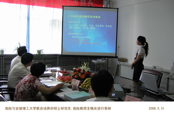 我院与安徽理工大学联合培养硕士研究生工作也取得新进展,刘吉成教授和张浩教授指导的硕士研究生王晓庆、杜凤霞已顺利通过了安徽理工大学基础医学院2005级硕士研究生论文答辩,即将获得硕士学位。