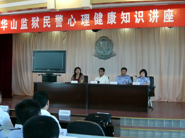 另外,应黑龙江省华山监狱的邀请和院学工部的委托,王玉花书记率领本院专业教师一行8人,还利用暑假为监狱的400多名干警和在押的300多名犯人进行了为期两天的心理健康讲座和团体心理辅导,受到华山监狱领导和广大干警的热烈欢迎。