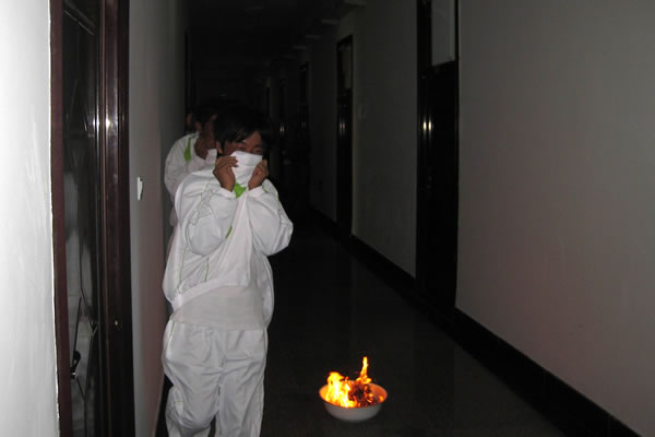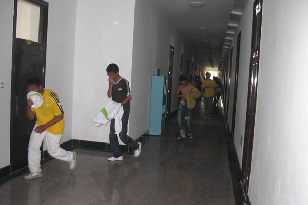 为了保证此次演练顺利进行,保卫处对此次演练进行了严密部署,细致安排,以确保安全。同时,针对军训人员集中、易调动的特点,首先在新生中开始演练。并于9月8日邀请齐市消防四中队教官来院对参加军训的教官和新生辅导员讲授火灾逃生方法和技巧,由他们向新生认真讲解逃生技能、演练计划与注意事项,新生在整个演练中都认真实践了所学到的同楼层火灾逃生方法,取得了理想的演练效果。