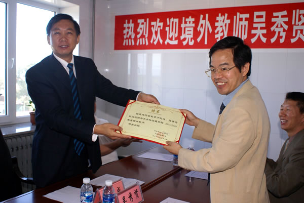 院长刘吉成为吴秀贤教授颁发境外教师聘书