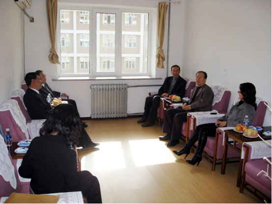 10月15日黑龙江省农垦总医院院长党委书记魏光春、副院长陈晨明、医政部部长郭振军来我院进行访问交流。院长刘吉成、副院长崔光成对他们的来访表示热烈欢迎,对该院的医疗、科研、教学综合实力给予了充分的肯定,对该院领导对我院临床教学的支持表示感谢,双方在愉快的气氛中对今后的教学合作进行了洽谈。