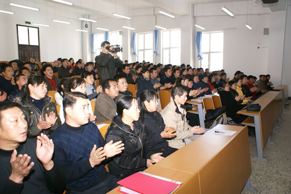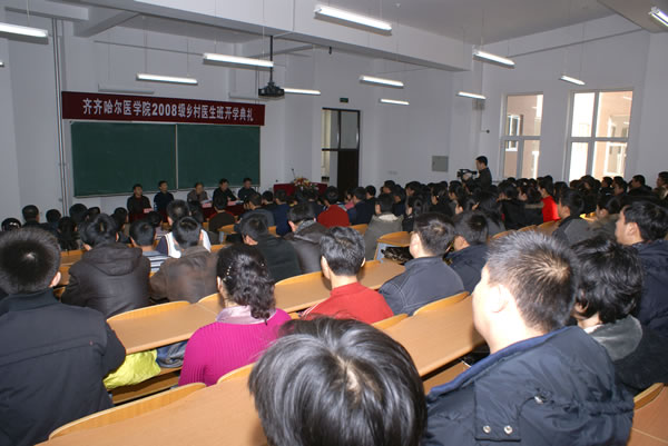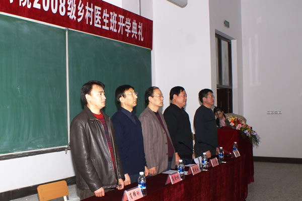 11月30日下午,学院2008级乡村医生开学典礼在主楼北区212教室隆重举行。学院领导及成教学院、学工部主要负责人参加仪式并在主席台就座。仪式由学院党委副书记姜连清主持,副院长崔光成在仪式上发表讲话,他说,各位新同学是通过“村村大学生计划”迈进大学校门,是同龄农村青年中的成功者,更是时代的幸运儿。乡村医生培养工作是省委、省政府以实际行动践行“三个代表”重要思想,实现教育为“三农”服务的具体体现。崔院长还全面介绍了学院的历史和发展现状,并满怀对乡村医生的殷切希望与厚爱从思想、学习和生活等方面对乡村医生提出了高标准和严要求。