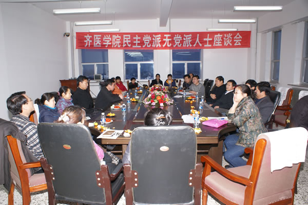 学院党委坚持每年召开民主党派和无党派人士座谈会,让他们了解学院一年来发生的变化和成就,同时,认真听取他们的意见和建议,充分发挥他们参政议政、建言献策的作用,使他们更加紧密地团结在学院党委周围,为建设文明和谐校园做出更大贡献。