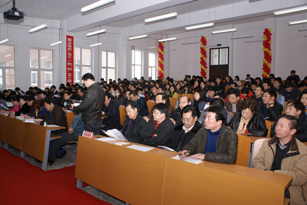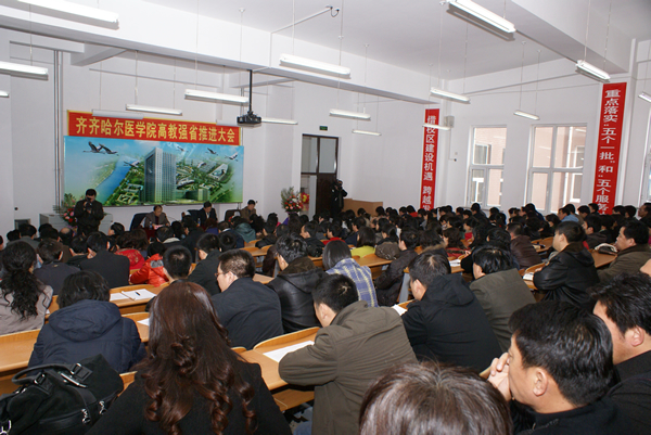继我院深入开展以“乘高教强省东风,借新校区搬迁建设机遇,全面提升学院整体实力,推动高教强省建设”为主题的高教强省建设大讨论活动,并形成了我院贯彻落实《黑龙江省高等教育强省建设规划》的具体实施方案后,为了进一步提高认识,统一思想,明确方向和责任,深刻理解并认真落实《方案》部署,推动学院以加快新校区建设为契机,乘高教强省的东风,促进各项工作再上一个新台阶。3月18日下午,学院隆重召开了高教强省工作推进大会。院本部副科级以上干部、副高职以上人员、教研室和实验室的主任、副主任以及附属医院领导班子成员近200人参加大会。会上,院长刘吉成作重要讲话,副院长崔光成宣读了《齐齐哈尔医学院贯彻落实<黑龙江省高教强省建设规划>实施方案》。会议由副院长姜凤楼主持。