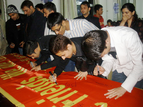 3月20日,学院团委与外事处在英语协会和留学生之间举办了一场以 “我的电影我做主” 为主题的Party。学院外事处辛丹老师、团委衣英欣老师、我院部分外教和留学生以及英语协会的全体成员参加了此次活动。在热烈融洽的气氛中,中外学生踊跃参与,他们通过电影配音、游戏、舞蹈等方式愉快地进行交流。最后,在一片欢声笑语中,同学们纷纷涌向印有“we are family”的条幅并认真地在上面写下自己的名字,共同期盼友谊长存。活动在《相亲相爱一家人》的欢快歌声中圆满落下帷幕。