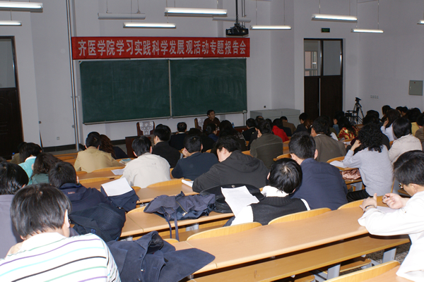 4月9日下午,学院党委特邀黑龙江大学博士生导师康渝生教授莅临我院为广大党员作学习实践活动辅导报告。学院领导、全院处级干部、附属医院院长助理和党办主任、学院本部副科级以上干部以及机关一般干部参加专题学习。学院学习实践活动领导小组副组长、党委副书记姜连清主持报告会。