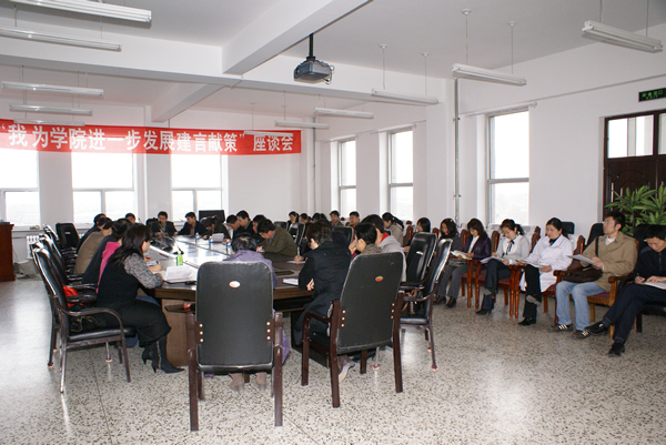 邱书记鼓励与会人员畅所欲言,积极为学院进一步科学发展建言献策,避免座谈流于形式。会上,大家热情踊跃、积极发言,就推动全院科学发展、加快发展提出了许多意见和建议,同时也反映出在教学改革与管理、学生工作、后勤服务和民生等方面存在的突出问题。