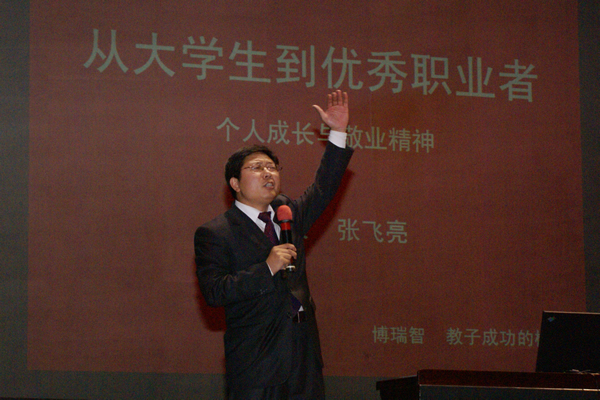 为了指导即将毕业的大学生快速融入一个新的成长环境,适应社会需要,找到胜任感,成长为一个优秀的职业者,5月18日,学工部邀请了吉林省博瑞智企业管理顾问公司总经理、品牌总顾问、高级心理咨询师张飞亮为我院明年毕业的1000余名学生作了题为“从大学生到优秀职业者——个人成长与敬业精神”的培训讲座,学工部全体成员、各学院书记和辅导员与学生共同聆听了张老师就迅速完成由大学生到职业者转变所作的精彩讲座。