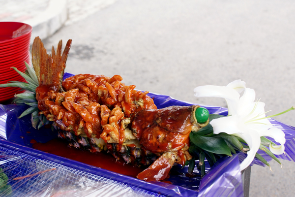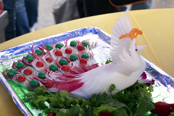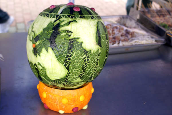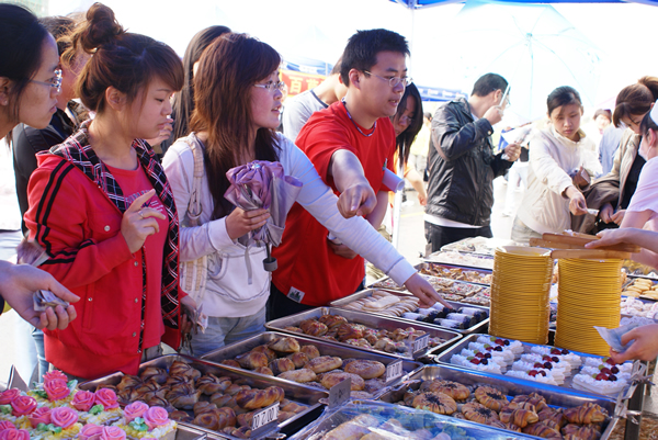 后勤服务总公司工作人员经过近一个月的策划筹备,为师生奉献了一场赏心悦目的盛宴,充分展现了中西方饮食文化的魅力和健康饮食新理念。参展食品可谓色香味俱佳、营养均衡、老少皆宜。本次美食节有菜汁烧麦、荷花卷、椰蓉面包等60余种中西方主食和松鼠鱼、果冻沙拉、各种串类等90余种荤素副食参展,向师生展示了饮食中心厨师高超的厨艺;巧夺天工的浮雕“龙”、孔雀开屏等雕刻作品则为本次美食节增添了艺术气息和文化品位。