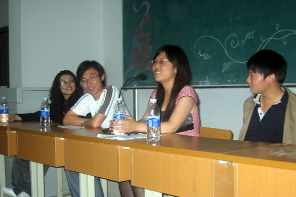 在交流会上,3位毕业生结合自身经历为现场同学提出了可借鉴的意见和建议。他们说,在校期间首先要学好外语、夯实专业基础,同时要通过积极参加各种社会实践活动,提升自己的就业竞争力;并要广泛关注考研、公务员考试以及就业形势等方面信息,以适应社会、适当调整就业期望值。他们还就同学们提出的关于“如何报考公务员”、 “在就业过程中单位更看重学生的成绩还是实践经验”、“在相对发达的大城市就业应注意哪些细节”等问题一一作了回答。