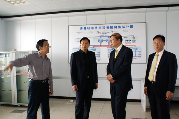 6月12日上午,省教育厅副厅长辛宝忠一行莅临我院视察并指导工作,学院领导邱福利、刘吉成、崔光成热情陪同辛宝忠副厅长一行参观校园,并向来宾介绍了学院发展建设概况。当辛宝忠副厅长看到我院新校区的喜人变化时,高度赞扬了新校园富有时代和文化气息,校园建设规划科学合理,又充分体现了科技与节约意识。视察中,他还对学院未来发展建设提出了指导意见。 学院领导陪同辛宝忠副厅长一行视察教学主楼 辛宝忠副厅长一行视察网络中心 学院领导与辛宝忠副厅长一行合影