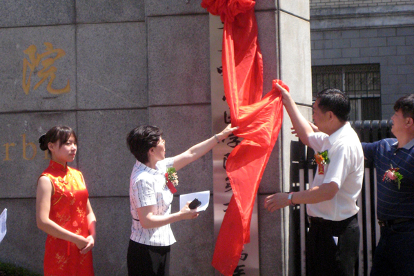 院长刘吉成与哈尔滨市卫生局局长慕莹为附属第九医院揭牌
