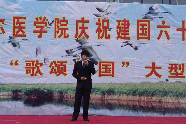 在举国上下庆祝建国六十周年、唱响爱国歌曲之际,院团委组织院社团联合会举办的 “齐齐哈尔医学院庆祝建国六十周年暨歌颂祖国大型歌会”于6月24日晚6点在主楼门前顺利举行。此次活动得到了各二级学院及附属医院团委的大力支持,并积极选送节目参与。