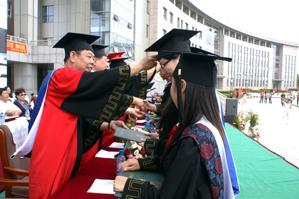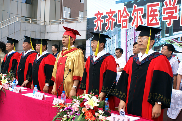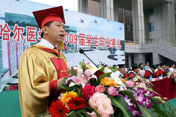 6月30日上午,在隆重、喜庆、庄严、神圣的气氛中,2009届学生毕业典礼在大医广场举行。学院领导邱福利、刘吉成、姜连清、谭忠汉、姜凤楼、崔光成身着导师服出席典礼。典礼由学院党委副书记姜连清主持,学工部、教务处、各学院和附属医院领导及2009届毕业生千余人参加了毕业典礼。