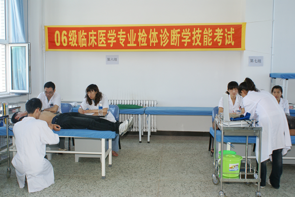 为提高诊断学教学质量,规范学生的检体操作,为下一阶段的临床专业课学习打下坚实基础,教务处于2009年7月18和19日在临床技能实验中心举行了检体诊断学实践技能考试。来自2006级临床医学专业、妇产专业方向、眼耳鼻喉专业方向共计785名学生参加了考试。尽管是天气十分炎热的休息日,但来自三所附属医院的28名临床教师及所有考务人员,仍然一丝不苟地组织考试;学生则紧张备考、积极演练、团结合作,互相充当模拟操作伙伴。