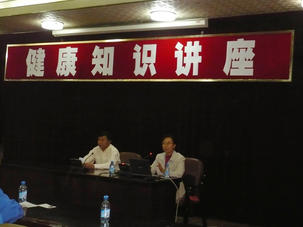 “两进”活动启动当日,公共卫生学院娄峰阁教授在轨道交通装备有限责任公司作了 “营养与健康”专题知识讲座,拉开了 “健康知识进企业”活动的序幕。她深入浅出地向参会的广大科技工作者和工人师傅们详细介绍了平衡膳食、合理营养的科学知识,并现场对大家提出的养生保健方面的问题答疑解惑,受到与会者的一致好评。
