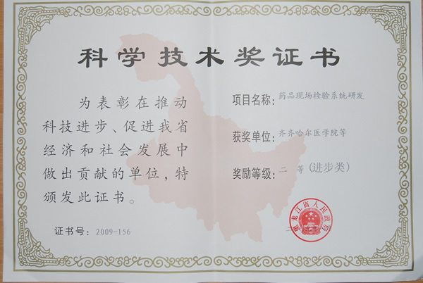 2009年8月,黑龙江省科学技术奖励委员会公布了2009年黑龙江省科技进步奖项评审结果,我院两项科研成果获奖。刘吉成教授主持的“药品现场检验系统研发”项目获黑龙江省科技进步二等奖;刘金煜教授主持的“拇指三指节多指、并指、多掌骨畸形家族遗传基因及临床治疗研究”项目获黑龙江省科技进步三等奖。近年来,我院科研项目多次在省市评选中获奖,展示了我院的科研实力,促进了我院科研水平和办学质量的进一步提高。(科技处2009年9月21日供稿)
