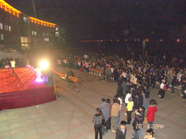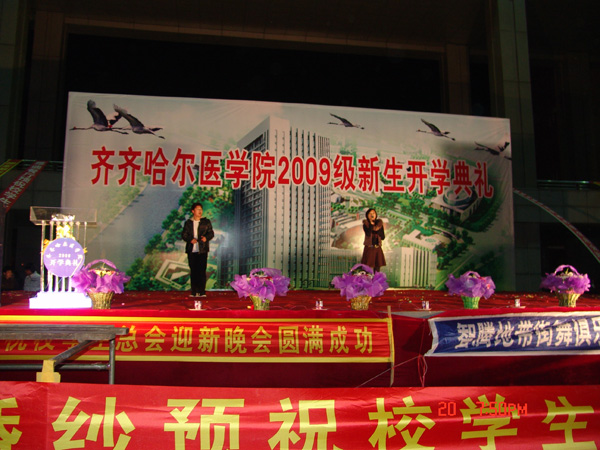 为庆祝祖国六十华诞,迎接2009级新同学,由学院团委主办、院学生总会承办的 “迎新生,庆国庆”文艺汇演10月20日晚6点在教学主楼前隆重举行。整场晚会气氛热烈,激情四溢,温暖了萧瑟的秋夜,点亮了金秋的夜空。