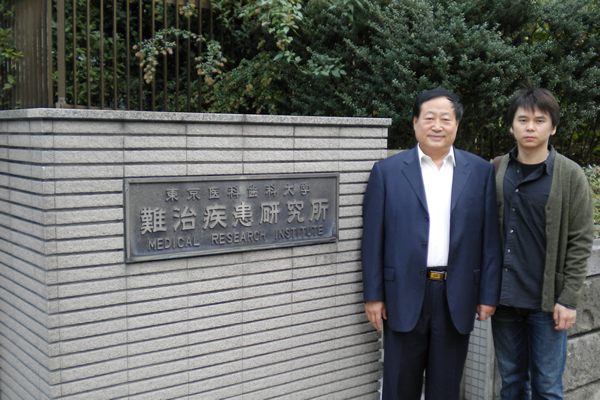 党委副书记姜连清与在东京医科齿科大学攻读先端医疗开发学博士课程的我院毕业生初明星合影