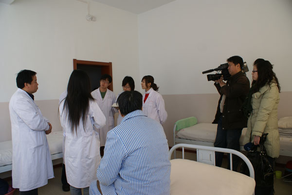 获悉我院精神医学专业就业率连年在95%以上,省电视台刘记者和肖记者于11月27日到28日特意赴齐市对我院精神医学专业人才培养情况进行采访。两位记者详细了解了我院精神医学专业的教学模式,并在学院副院长崔光成的陪同下,深入附属二院精神疾病诊疗中心,现场查看了我院精神医学专业学生的实习过程。经过全面的调查采访,两位记者对我院精神医学专业人才培养方案表示由衷赞赏,认为这种培养方案充分体现了教学与实践紧密结合的办学特色,值得广泛宣传推广。在我院教务处、精神卫生学院师生的全力配合下,两位记者进行了深入采访报道。