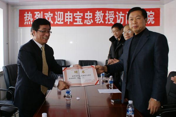 刘吉成院长为申宝忠教授颁发客座教授聘书